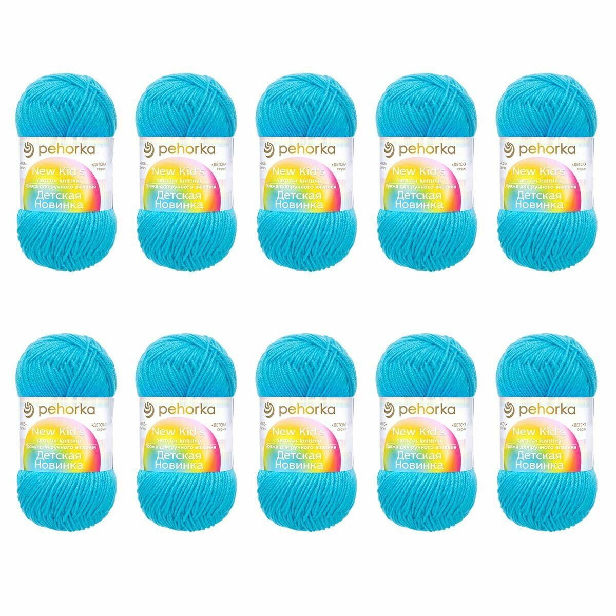 Пряжа Пехорка Детская новинка 5 мотков, цвет лагуна 591, состав 100% акрил, вес 50г, длина 200м