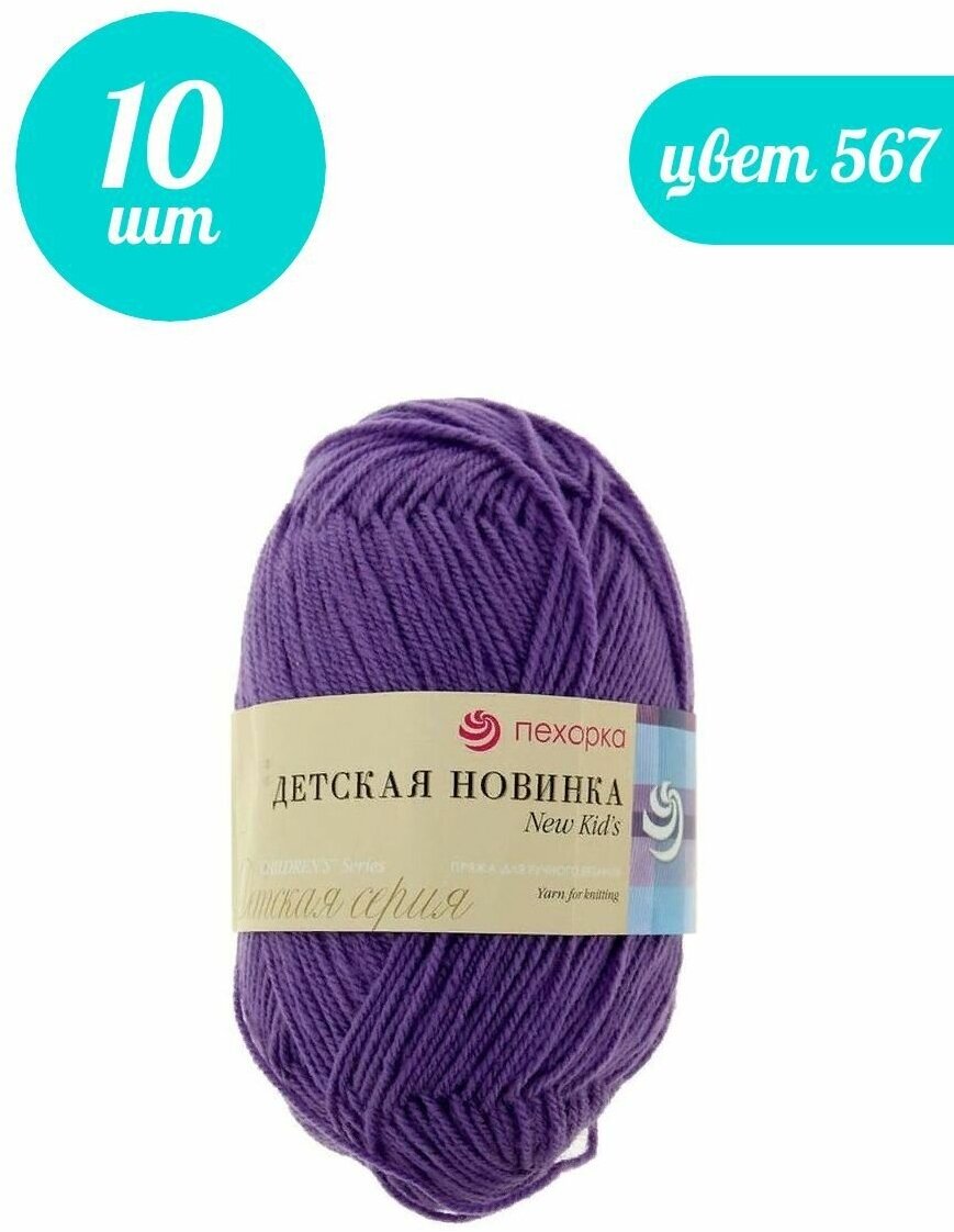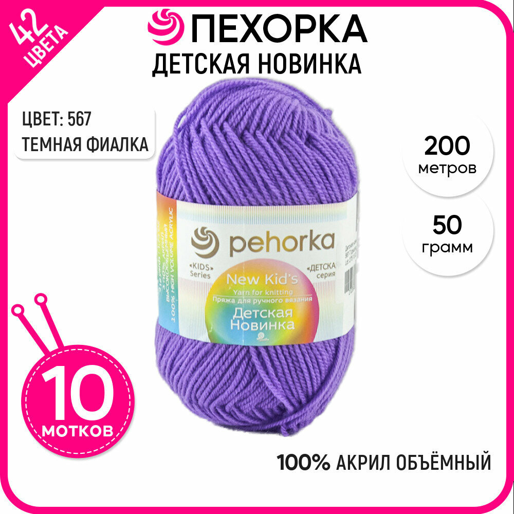 Пряжа для вязания Пехорка 'Детская новинка' 50г, 200м (100% акрил) (567 темная фиалка), 10 мотков