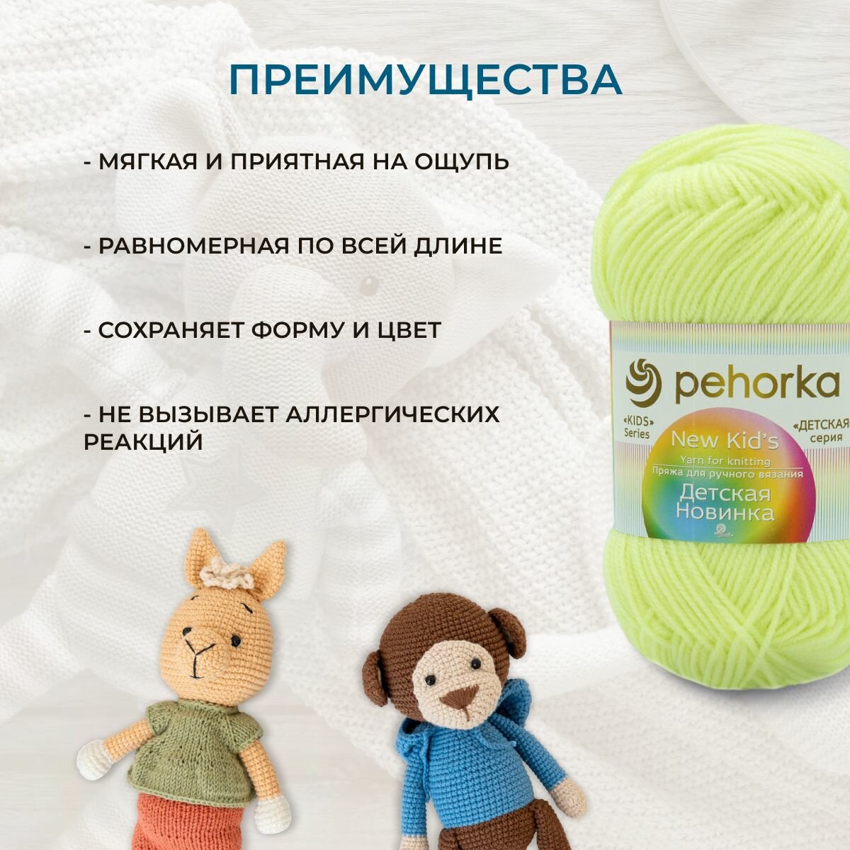 Пряжа Детская новинка (Пехорка), Белый - 01, 100% акрил высокообъёмный, 10 мотков, 50 г., 200 м.