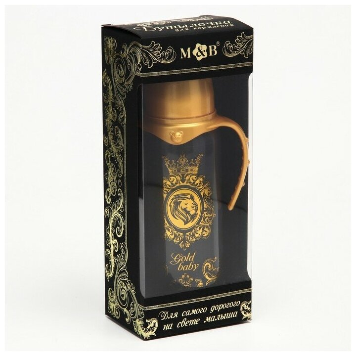 Бутылочка для кормления «M&B» классическая, с ручками, 250 мл, Золотая коллекция