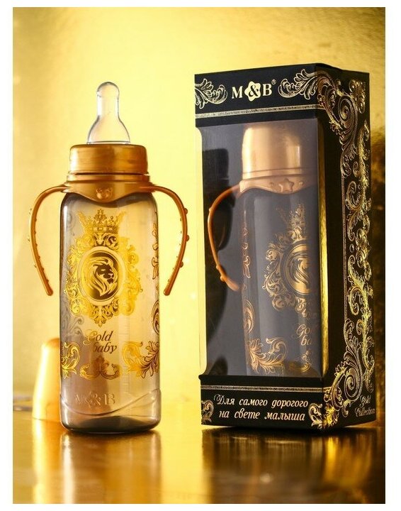 Бутылочка для кормления «Gold baby» классическая, с ручками, 250 мл, Золотая коллекция