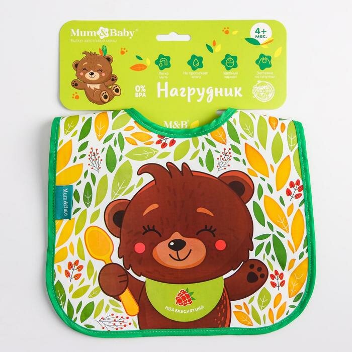 Mum&Baby Нагрудник «Мишутка», непромокаемый на липучках, с карманом, виды микс интересное: