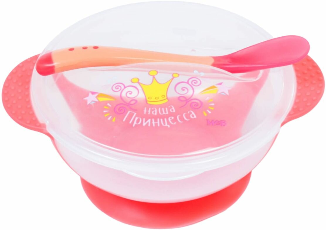 Детские наборы посуды Mum&Baby Набор для кормления «Наша принцесса», 3 предмета: миска 350 мл на присоске, крышка, ложка, цвет розовый