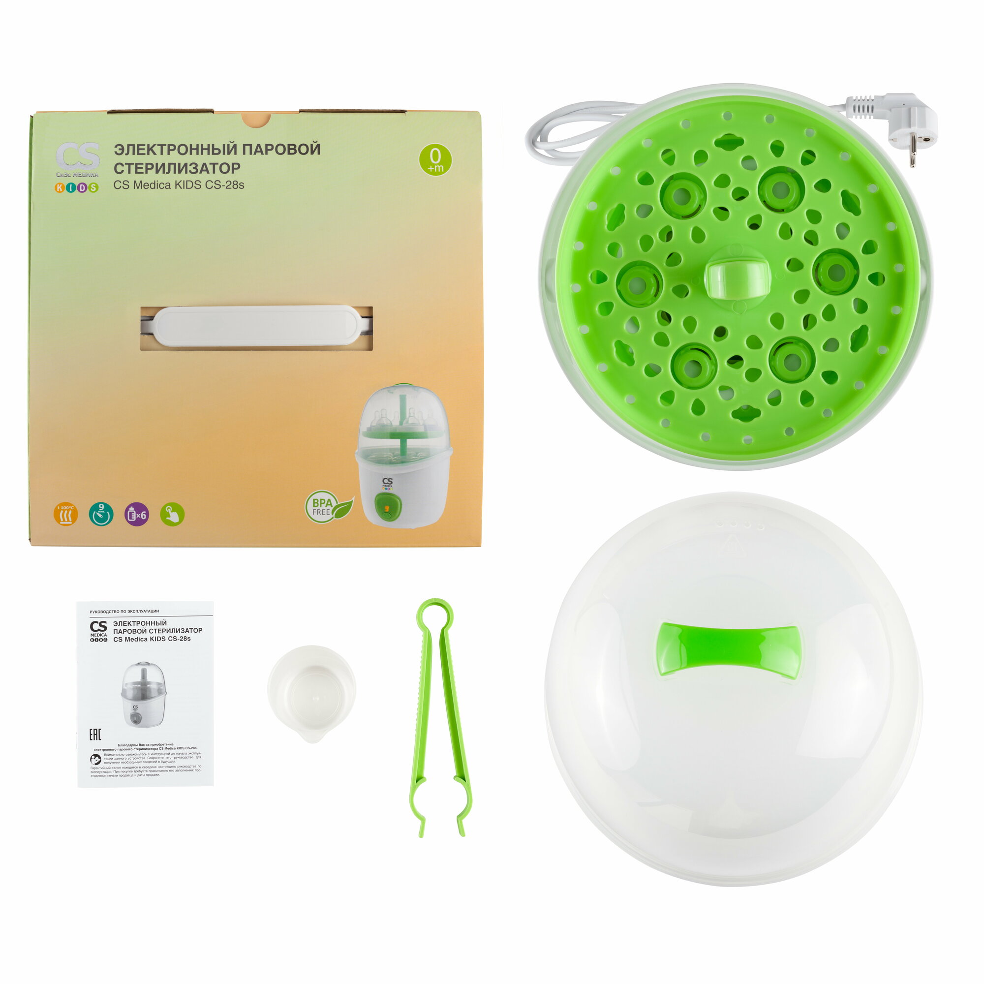 Электрический стерилизатор CS Medica KIDS CS-28s, белый/зеленый