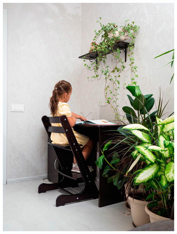 | Минусы: | Не удобно ребенку самостоятельно садиться. Нужно отодвинуть от стола, посадить, затем придвинуть |