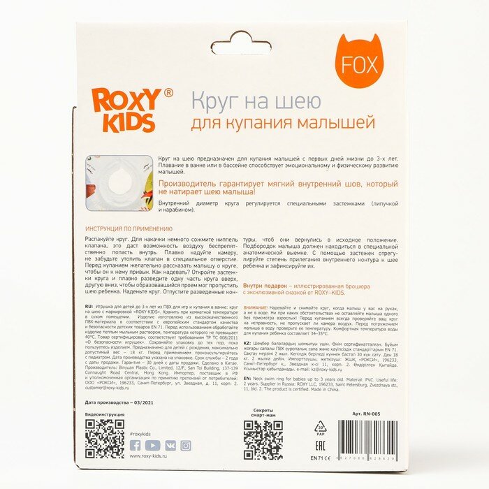 Roxy-kids Надувной круг на шею для купания малышей Fairytale Fox интересное: