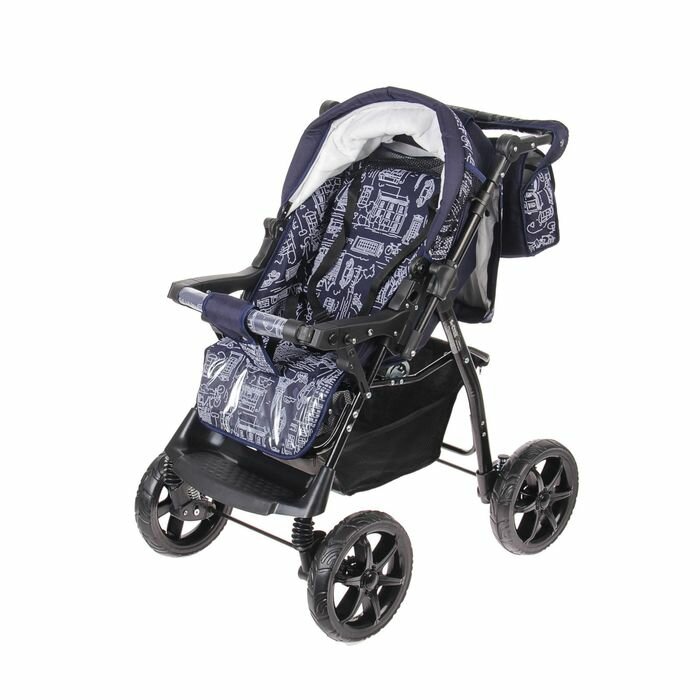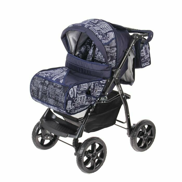 Стек Коляска-трансформер «Гном», пластиковые колёса, оттенки синего, рисунок микс интересное: