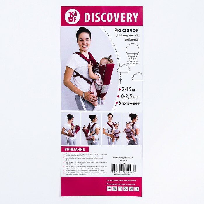Купить KiDi Рюкзак-кенгуру «Дискавери», цвет бордо, 5 положений, 2-15 кг