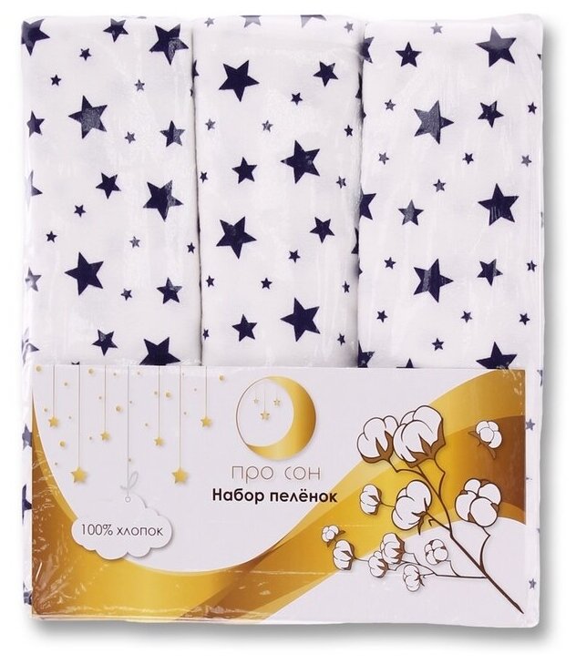 Купить Про Сон Пеленка фланелевая, 3 шт. в упаковке, синие звезды на белом