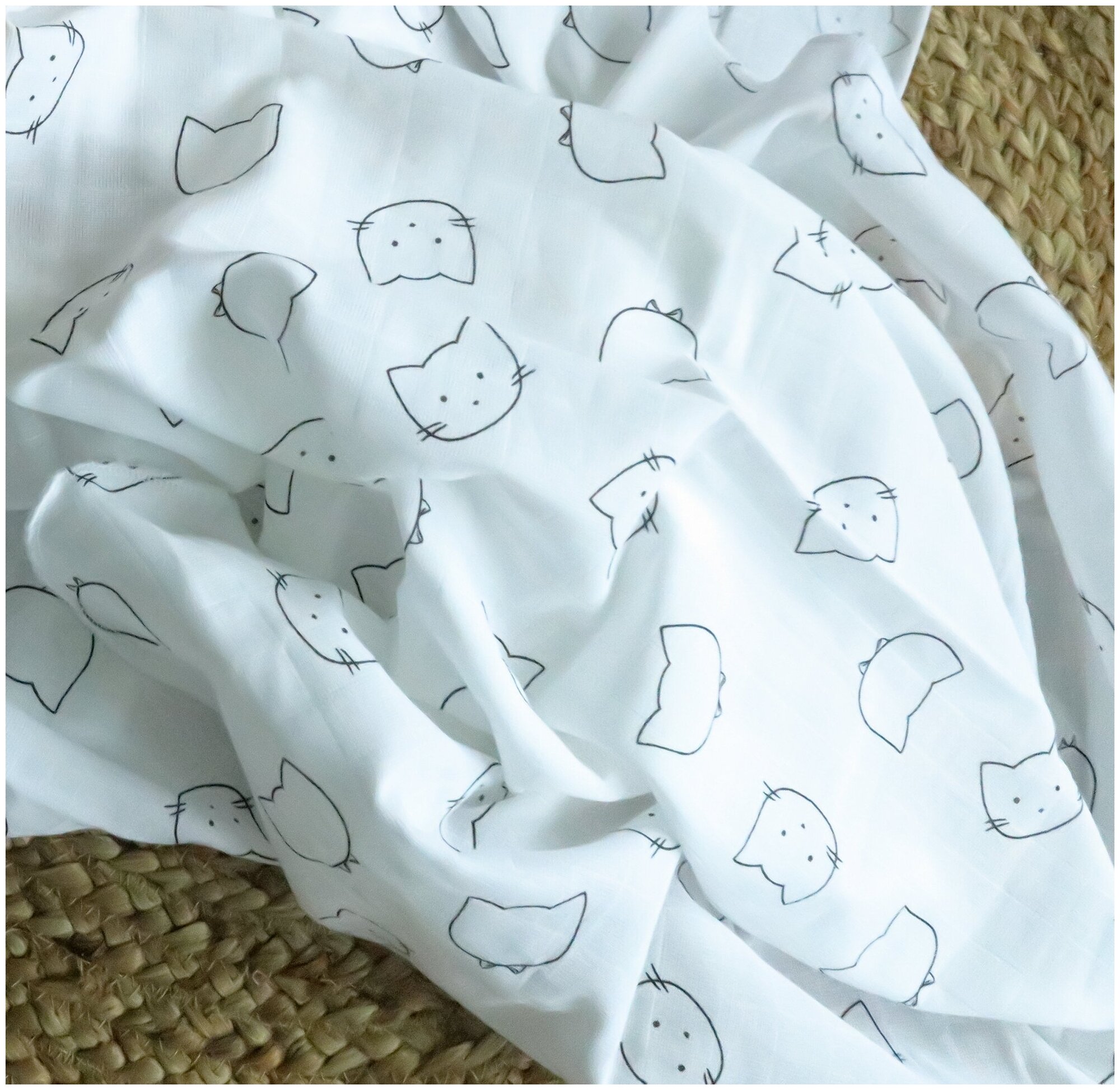 Купить Пеленка из муслина, рис.: "Котики", 90 х 130 см., 100% Хлопок / Пелёнка текстильная