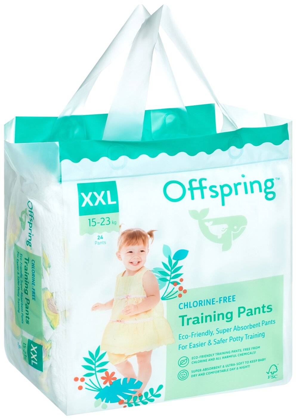 Трусики-подгузники Offspring расцветка Тропики XXL (15-23 кг.), 24 шт., Of02xxllea