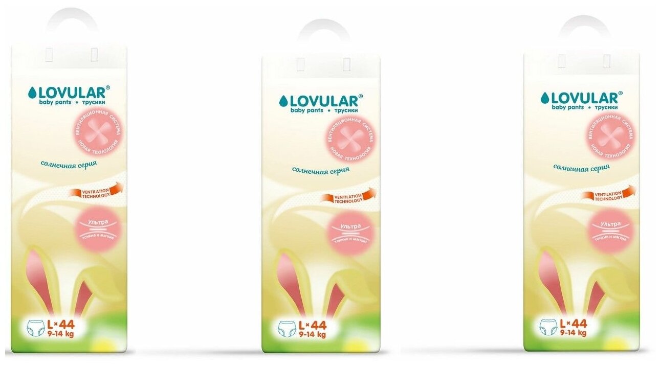 Ниже Вы можете прочитать отзывы на Lovular Подгузники-трусики Солнечная серия L, 9-14 кг, 44 шт - 3 шт, ознакомится с подробными характеристиками, посмотреть интересные обзоры и фотографии на Lovular Подгузники-трусики Солнечная серия L, 9-14 кг, 44 шт - 3 шт.