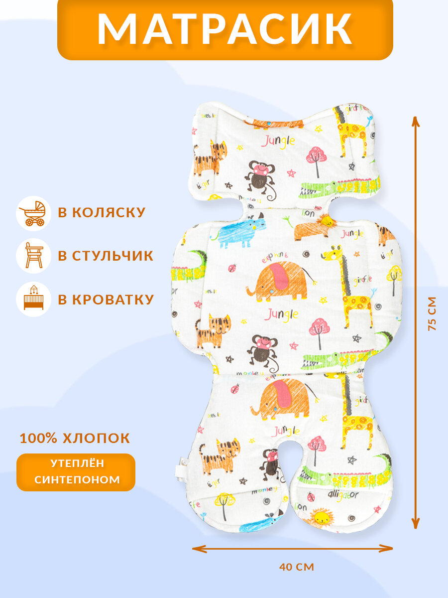 Купить Про Сон Матрасик в коляску / Вкладыш в автокресло Джунгли