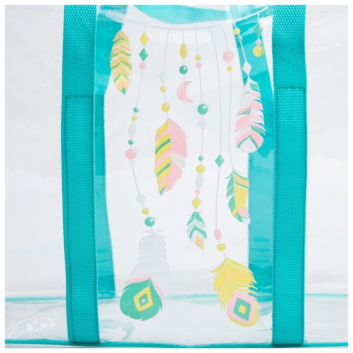 Сумка в роддом Mum&Baby "Перья", размер L, прозрачный/бирюзовый