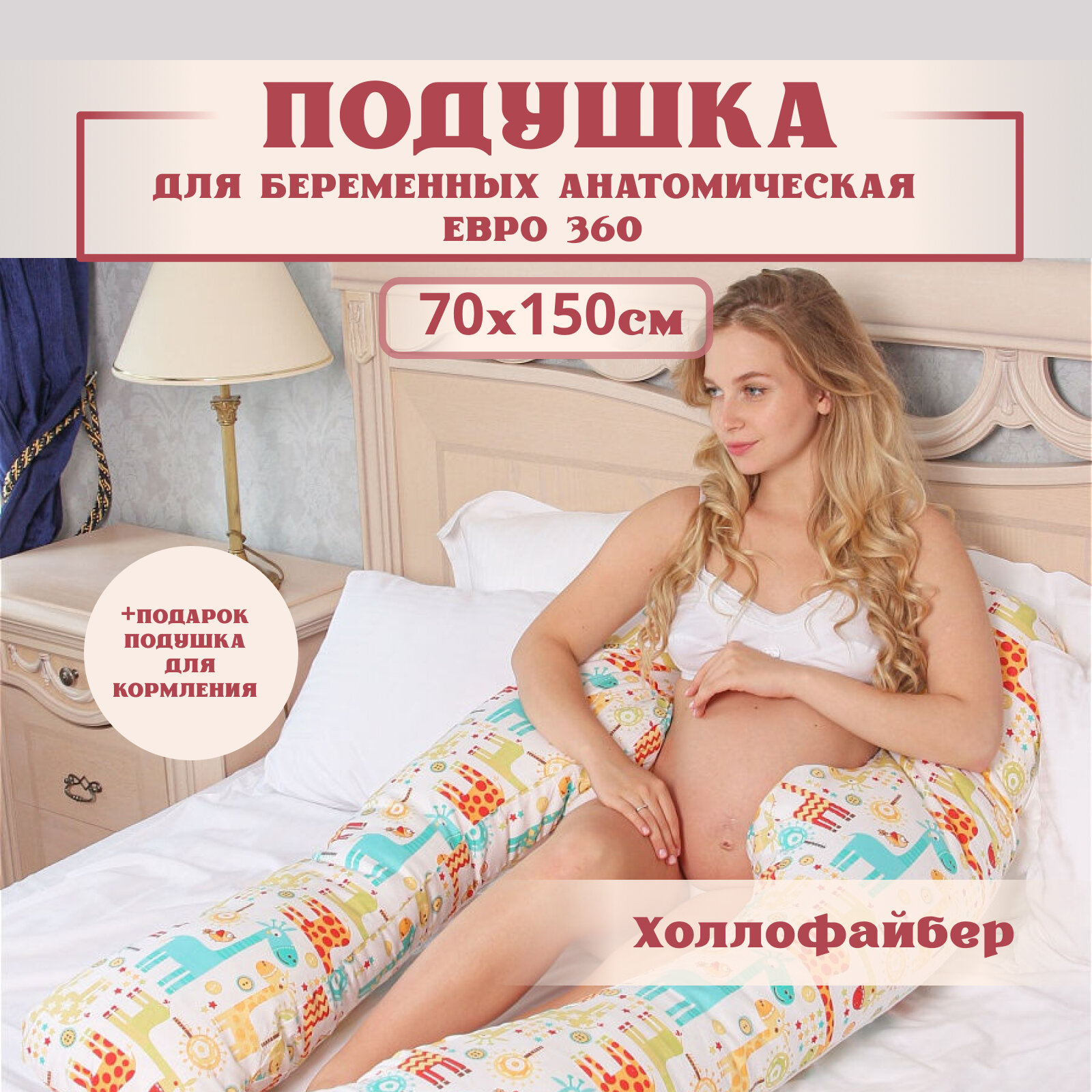 Купить Подушка Евро 360 для беременных и кормящих 150х70 см.Расцветка-жирафы.Анатомическая.Texxet, с холлофайбером. Подарок подушка для кормления