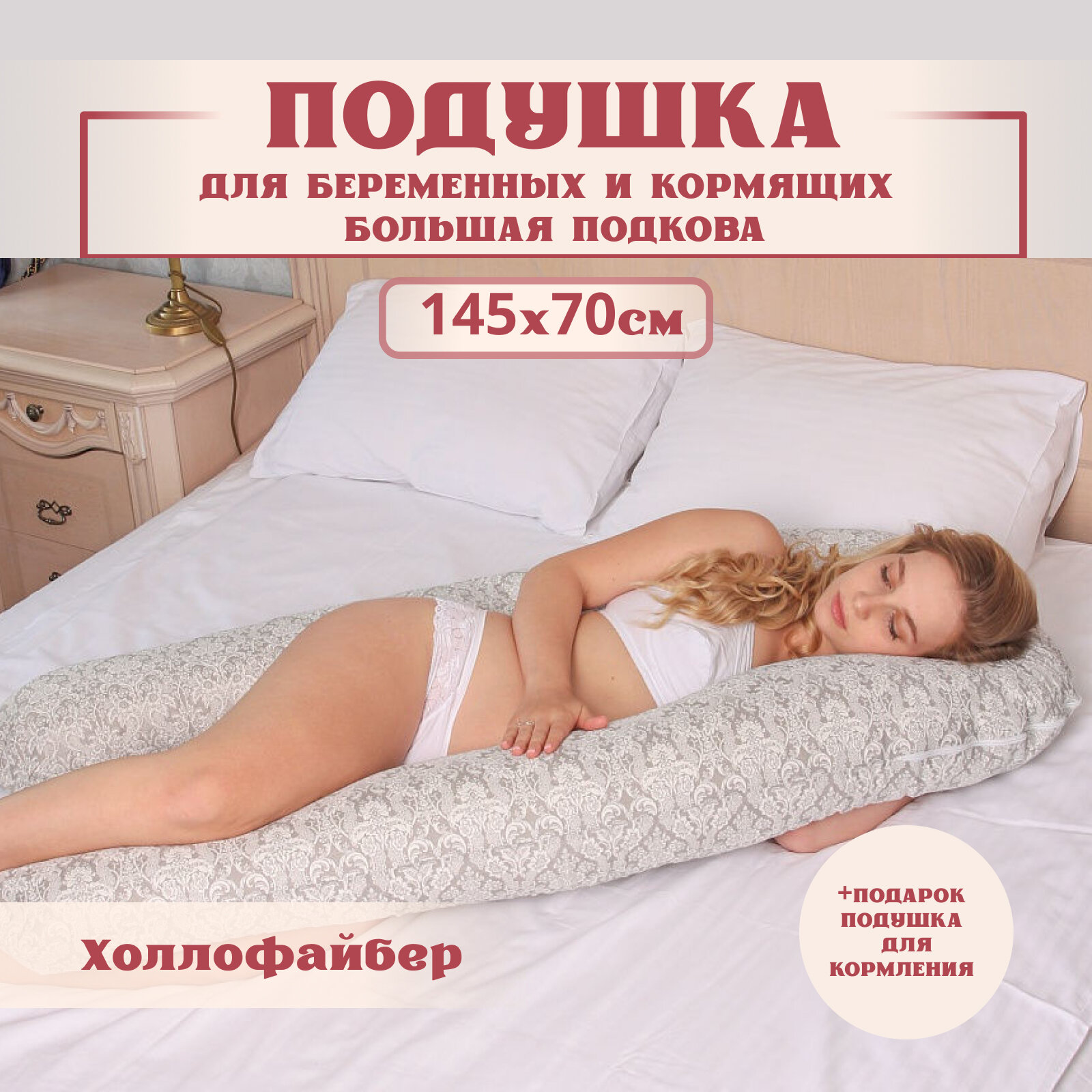 Купить Подушка для беременных и кормящих 145*70см Премиум, Большая подкова форма U. Цвет - Барокко. Texxet. С лебяжим пухом + подушка для кормления в подарок