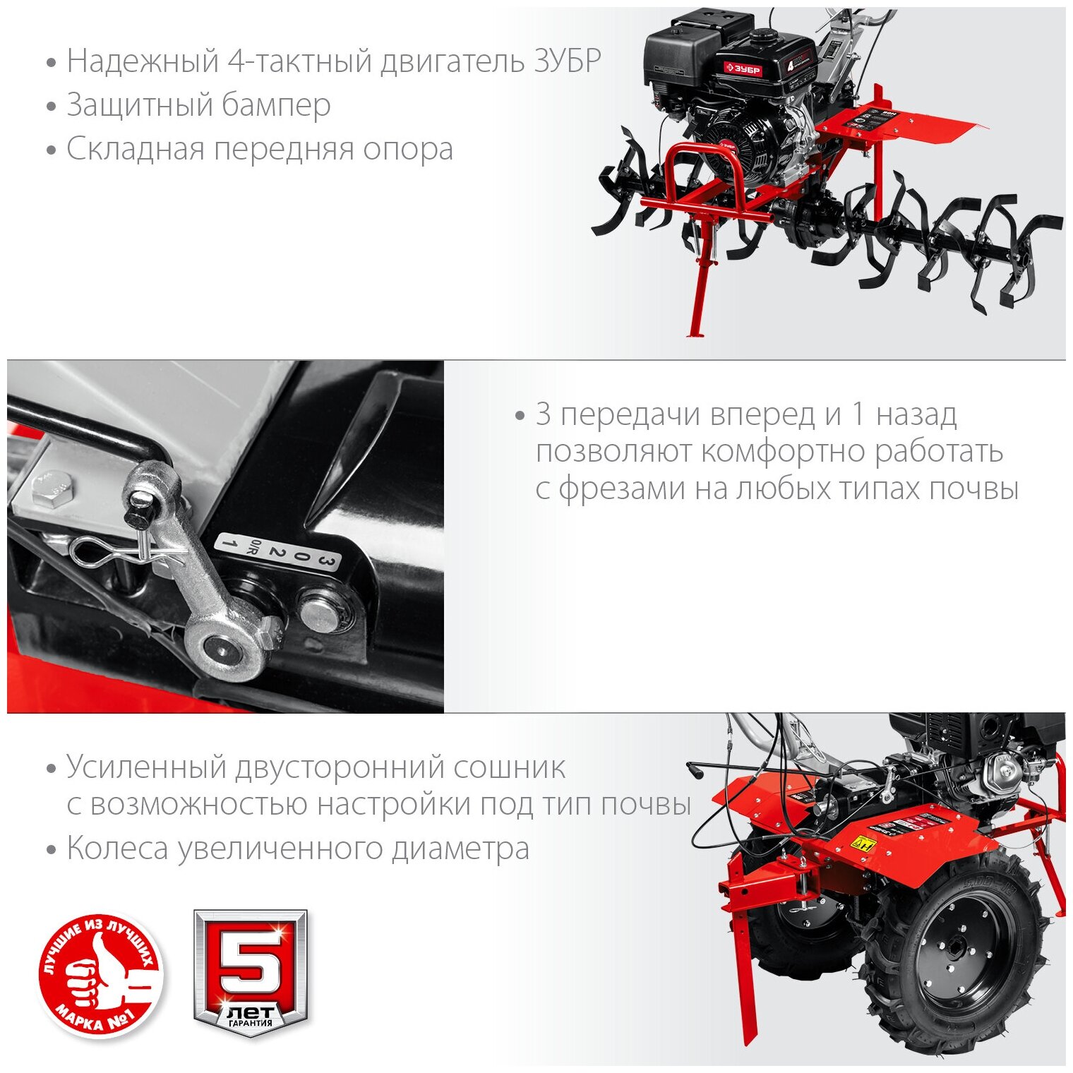 Купить Бензиновый мотоблок с ВОМ ЗУБР 13 л.с. скорости 3+1 МТШ-700