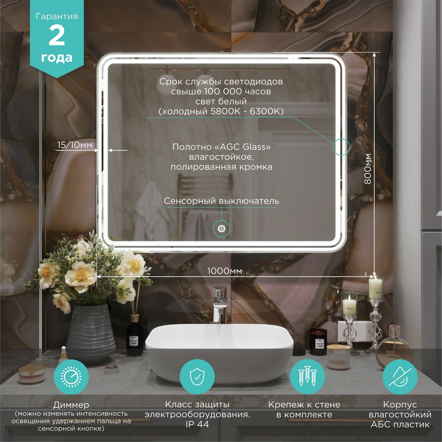 Купить Зеркало MIXLINE "Адриана" 1000*800 (ШВ) сенсорный выключатель, светодиодная подсветка