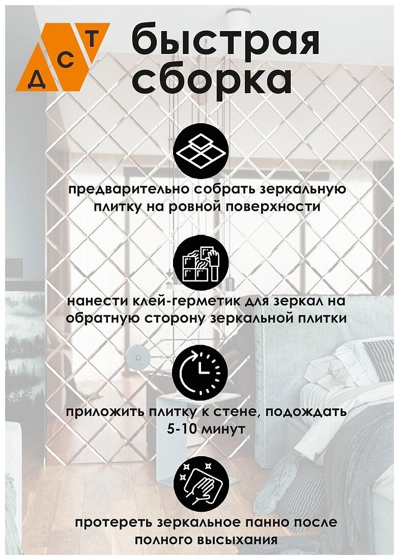 Ниже Вы можете прочитать отзывы на Зеркальное панно 68x136 см, зеркальная плитка квадрат, треугольник 12x12 см., цвет серебро. "ДСТ", ознакомится с подробными характеристиками, посмотреть интересные обзоры и фотографии на Зеркальное панно 68x136 см, зеркальная плитка квадрат, треугольник 12x12 см., цвет серебро. "ДСТ".