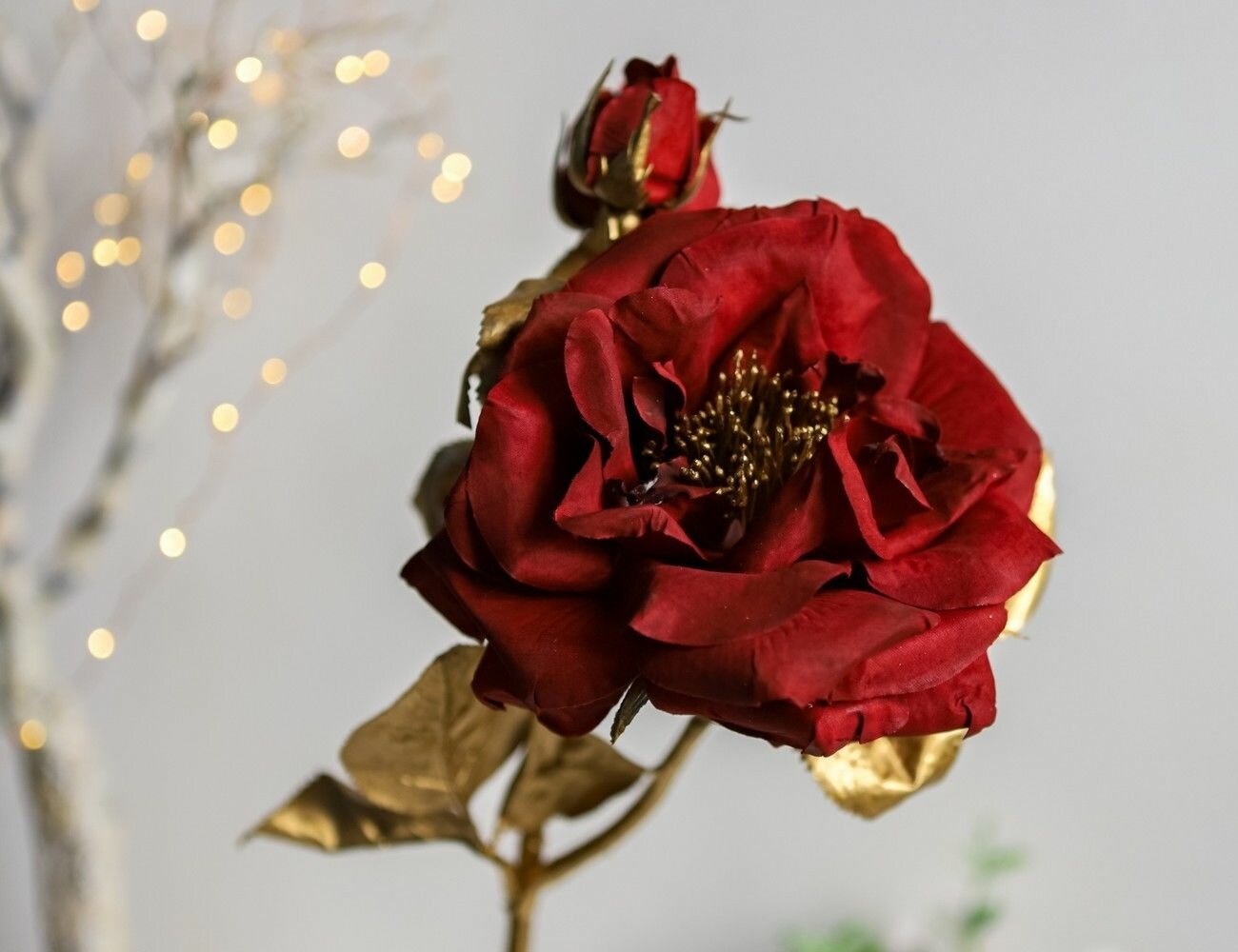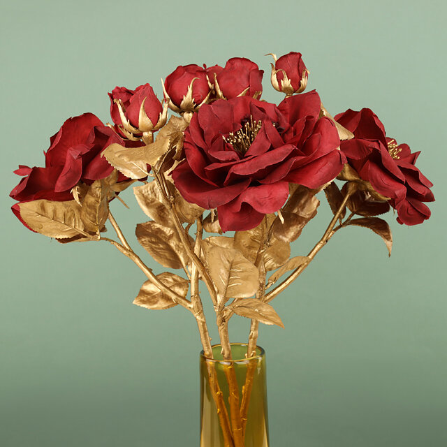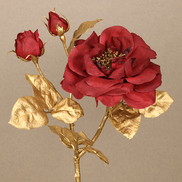 Декоративная роза - королевское великолепие с бутонами, искусственный шёлк, бургунди, 58 см, EDG