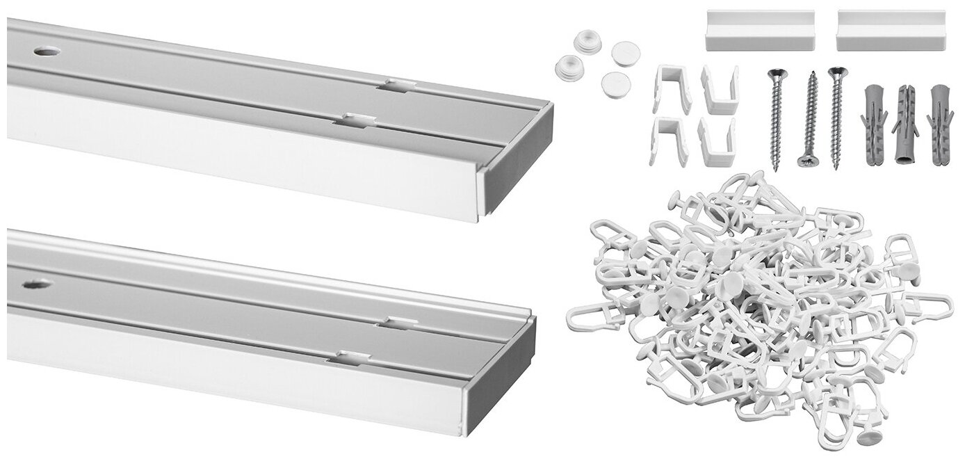 Карниз потолочный для штор и тюля, Пластмассовый, Двухрядный, Оптима Уют, цвет: Белый, 160 см, составной из двух частей
