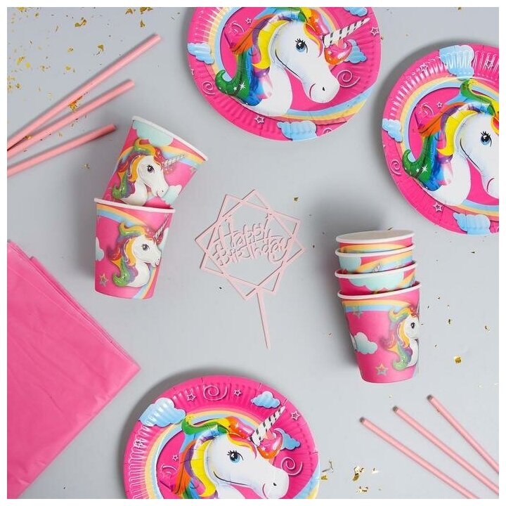 Набор посуды "С Днём Рождения" единорог, цвет розовый 5142354 интересное: