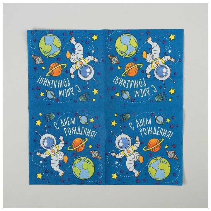 Cалфетка «С днём рождения», космонавт, 25х25, набор 20 шт. интересное:
