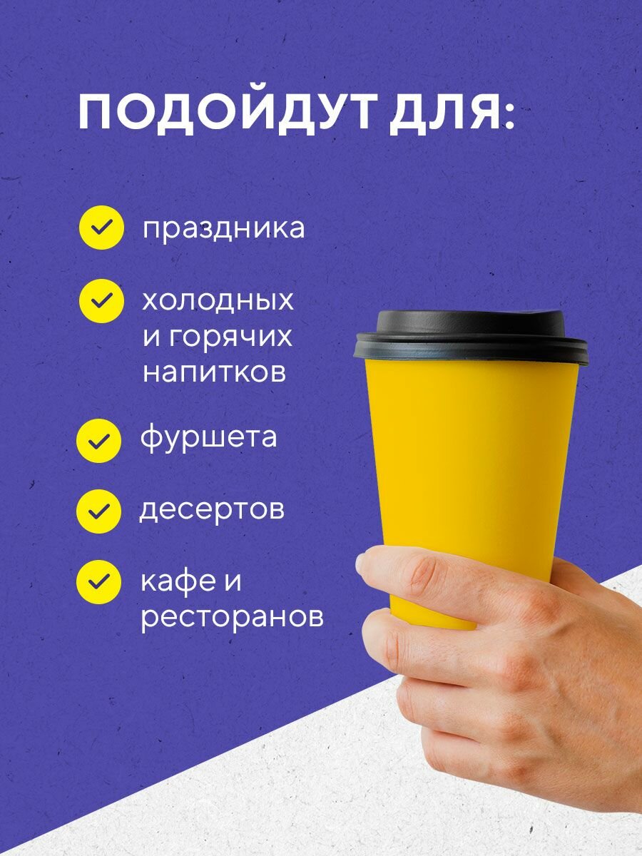 Набор бумажных стаканов GoodCup, объем 350 мл, 50 шт, Желтый, однослойные: для кофе, чая, холодных и горячих напитков