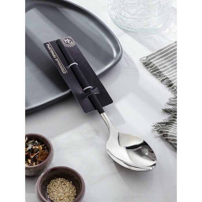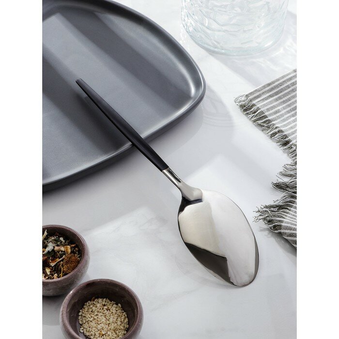 Ложка гарнирная из нержавеющей стали Magistro «Грэйс», h=27,5 см, цвет ручки чёрный, цвет головы серебряный (арт. 7354122)
