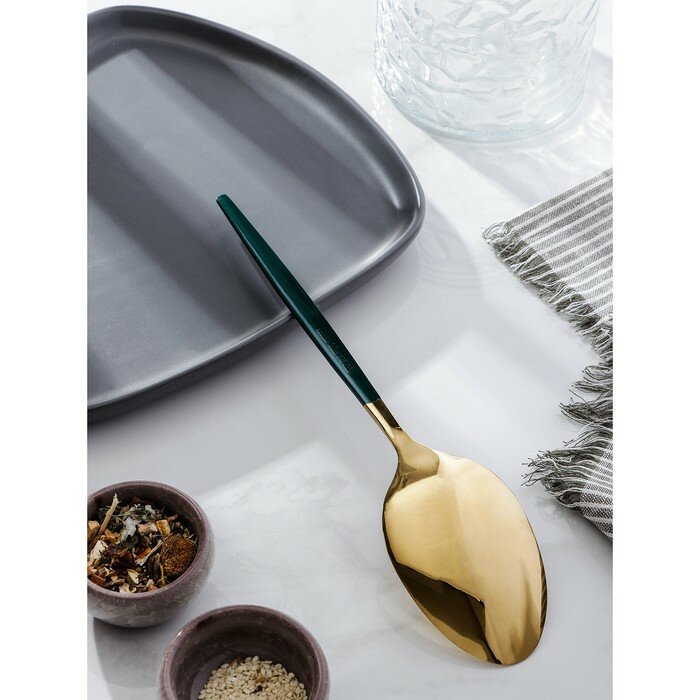 Ложка гарнирная из нержавеющей стали Magistro «Грэйс», h=27,5 см, цвет ручки зелёный, цвет головы золотой
