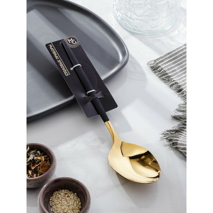 Ложка гарнирная из нержавеющей стали Magistro «Грэйс», h=27,5 см, цвет ручки чёрный, цвет головы золотой