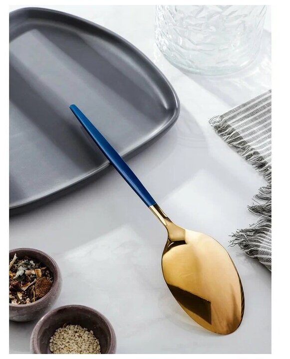 Ложка гарнирная Magistro «Грэйс», h=27,5 см, цвет ручки голубой, цвет головы золотой