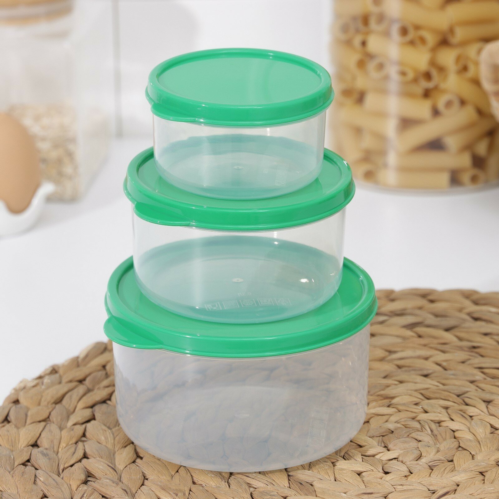 Купить Доляна Набор контейнеров пищевых круглых Доляна, 3 шт: 150 мл, 300 мл, 500 мл, цвет зелёный
