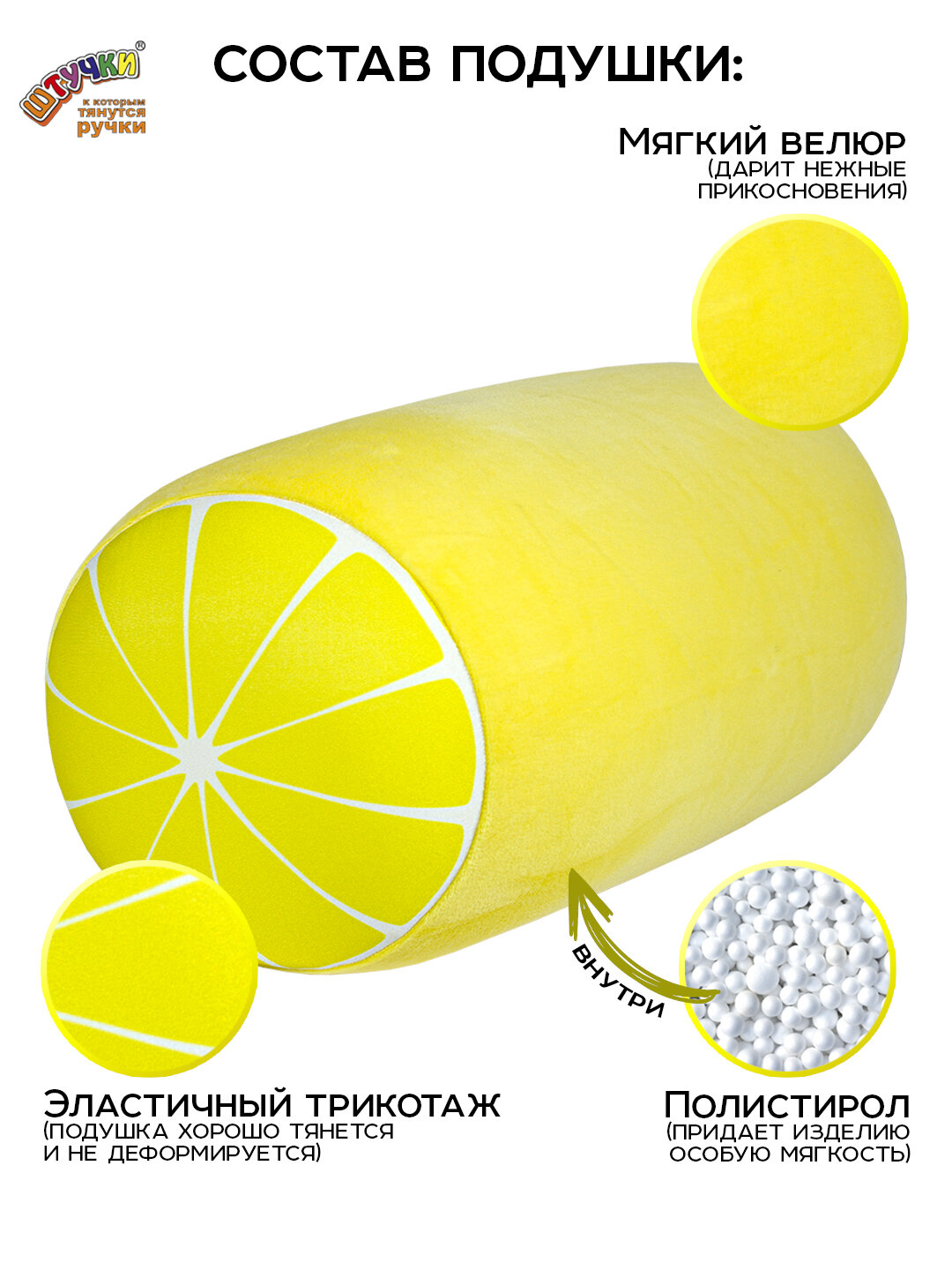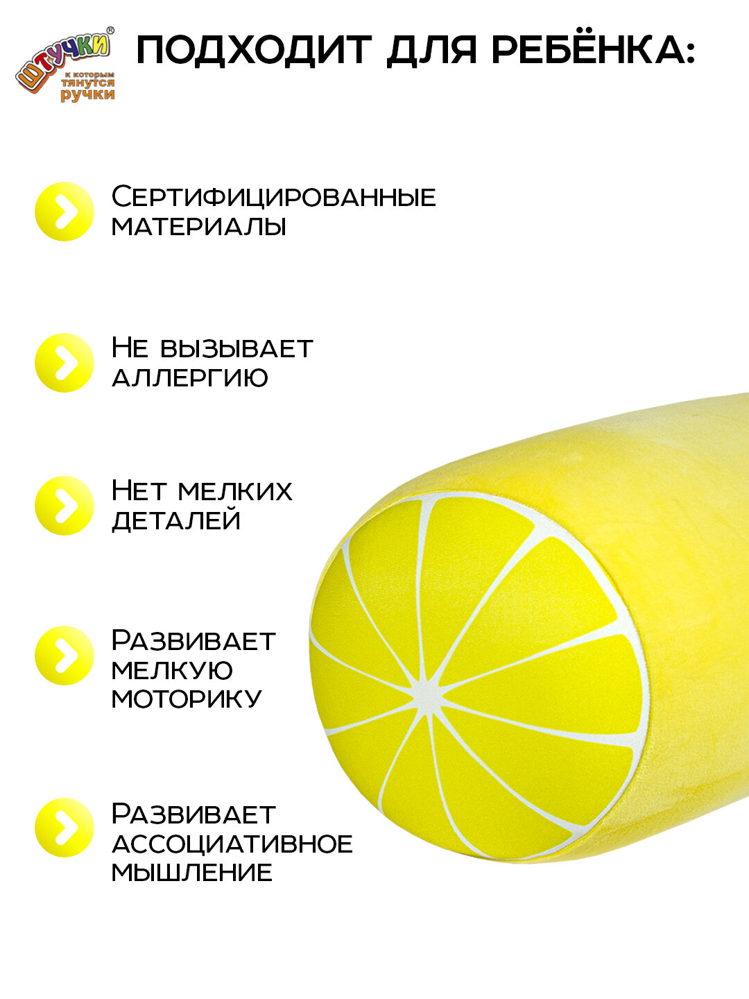 Купить Антистрессовая подушка-валик Штучки, к которым тянутся ручки Фрукты, лимон