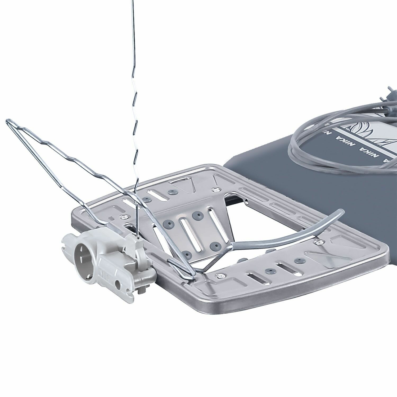 | Комплектация | встроенная розетка для утюга / гладильный рукав / кронштейн для провода / подставка для утюга / полка для белья |