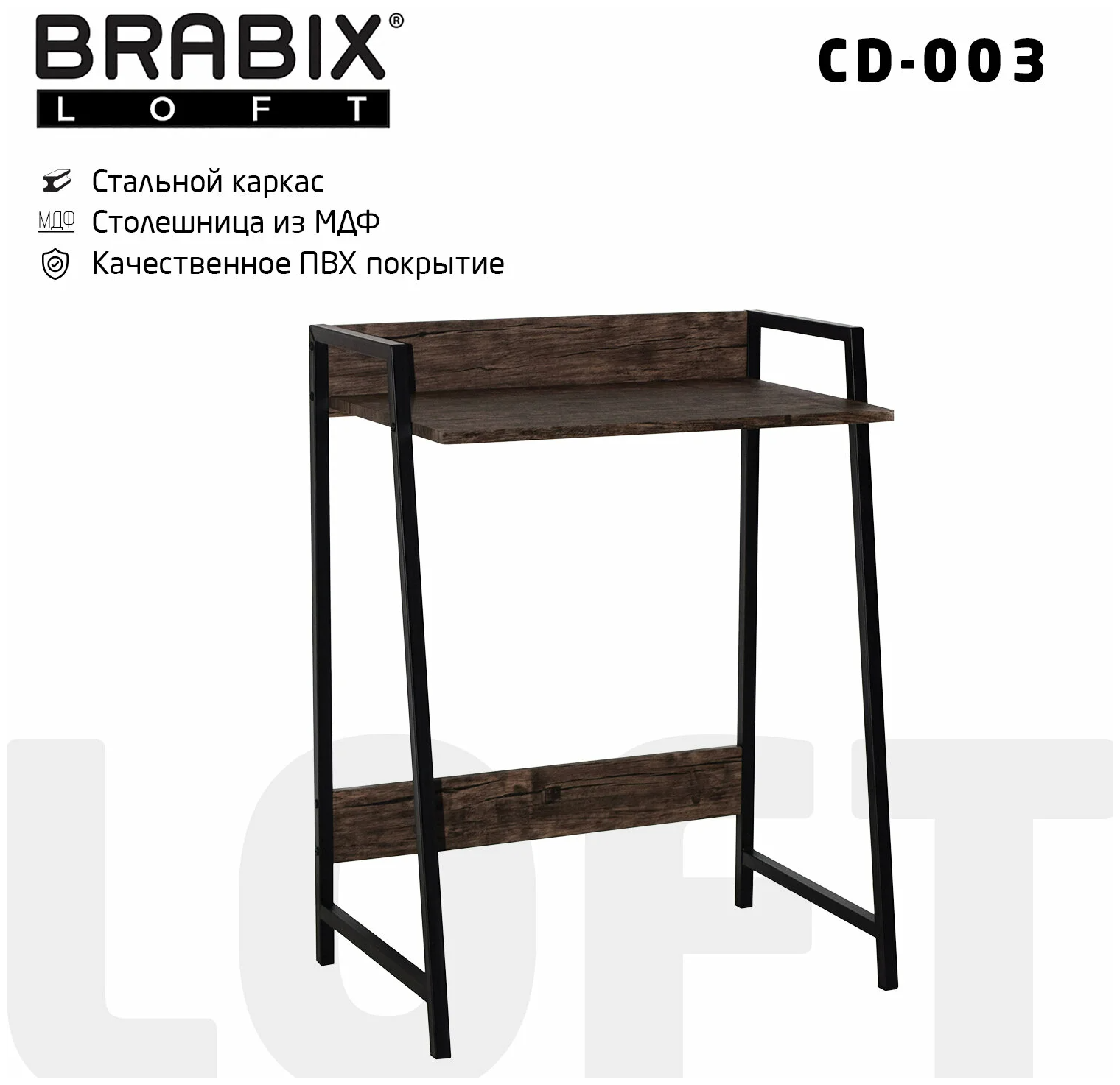 Купить Стол на металлокаркасе BRABIX "LOFT CD-003", 640х420х840 мм, цвет морёный дуб, 641215