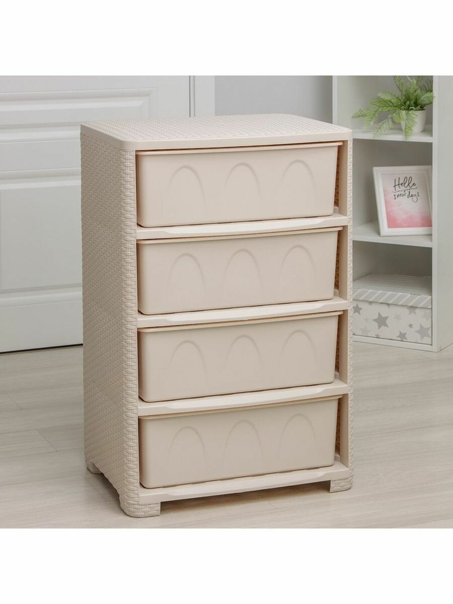 Купить Комод четырехсекционный Альтернатива Плетенка, 55,5 x 44,5 x 87,5 см, слоновая кость