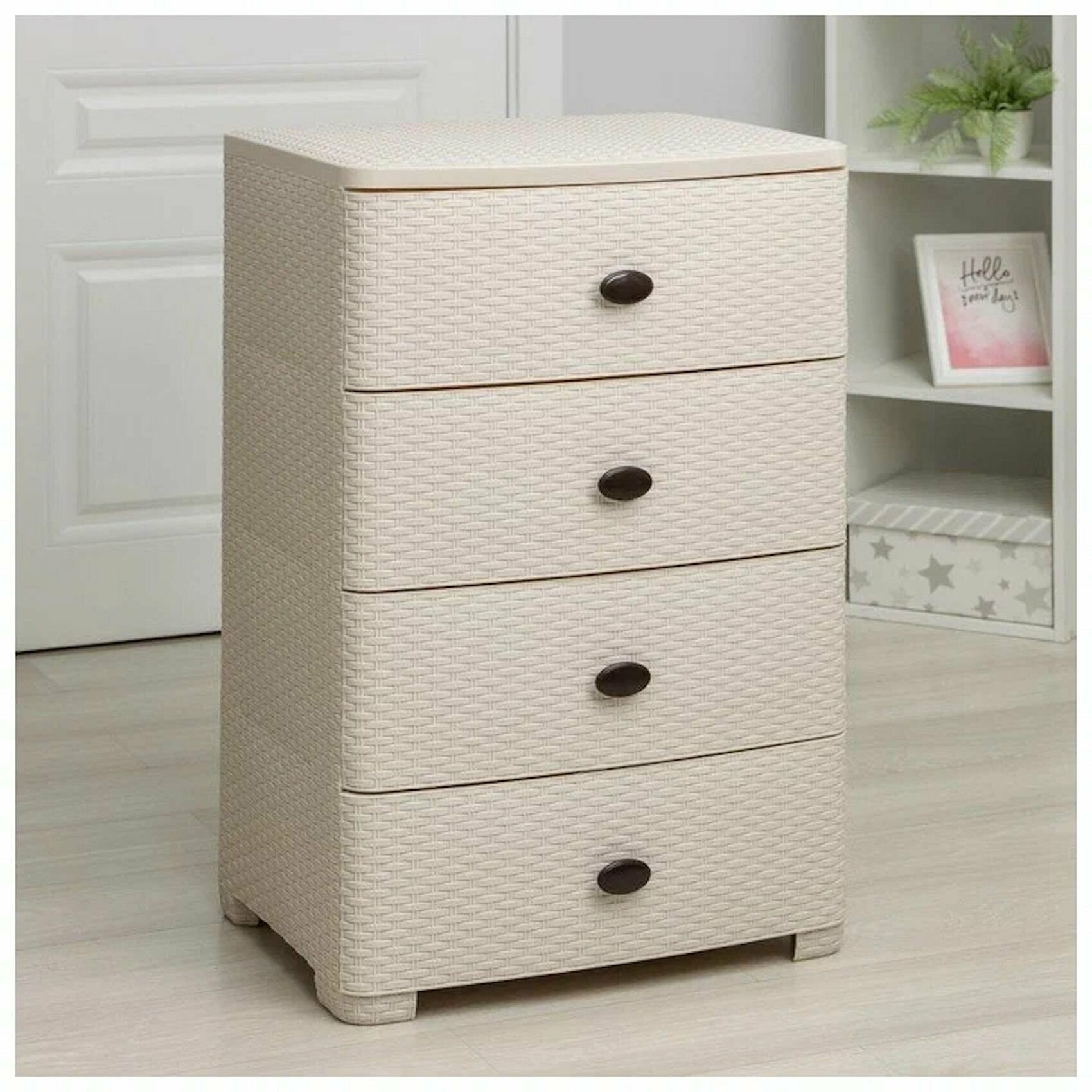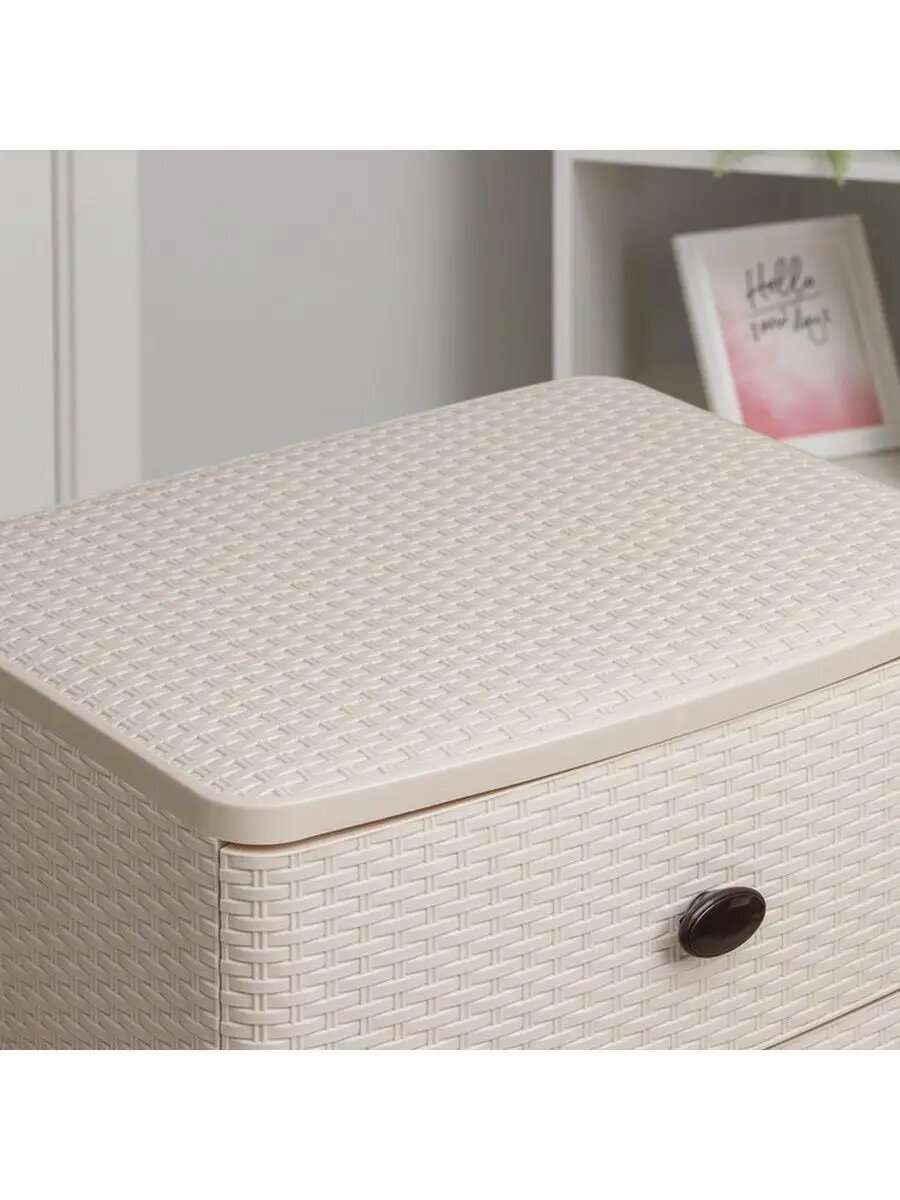 Комод 4-х секционный пластиковый Плетенка М4059 слоновая кость широкий