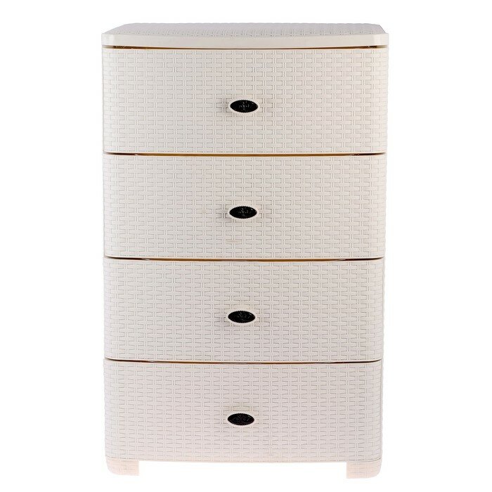 Комод 4-х секционный пластиковый Плетенка М4059 слоновая кость широкий