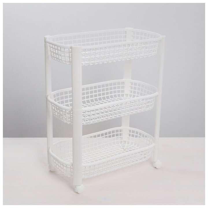 Этажерка напольная 3-х секционная, на колёсиках, 27?36?66 см, цвет белый 890989 .