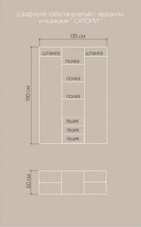 Шкаф-купе из массива трехстворчатый с зеркалом и ящиками Сатори интересное: