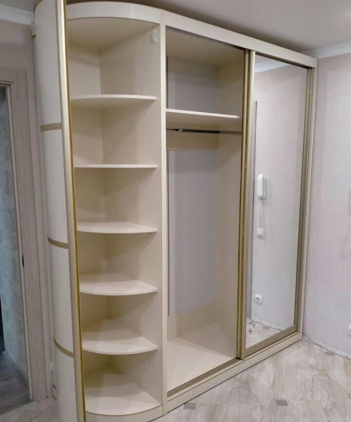 Угловой распашной шкаф 450х2350х450 с радиусной дверью интересное: