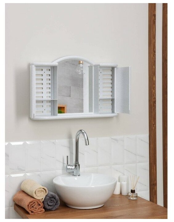 Купить Шкафчик зеркальный для ванной комнаты "Арго", цвет белый мрамор
