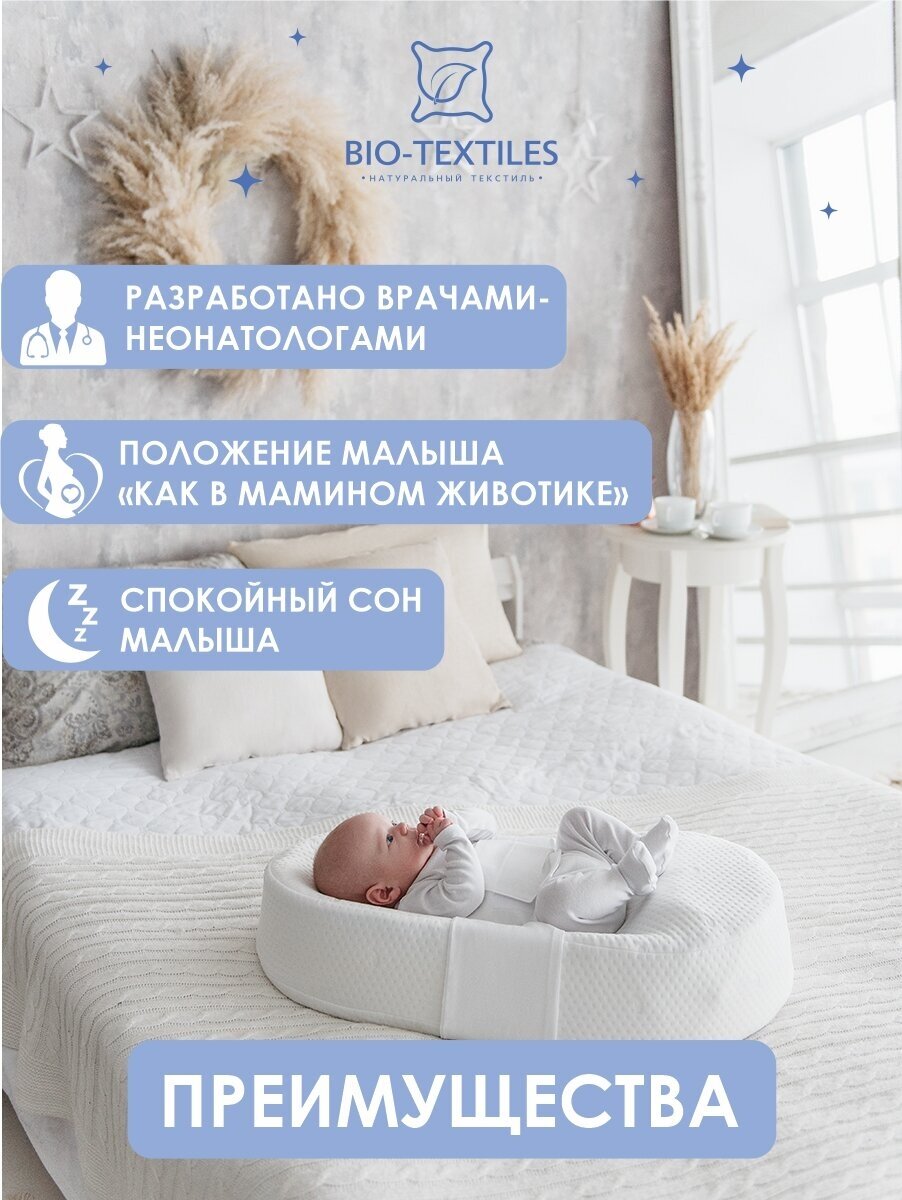 СохранитьКокон для новорожденного с эффектом памяти BIO-TEXTILES "Baby-Люлька" 74х38х6/14 белый интересное: