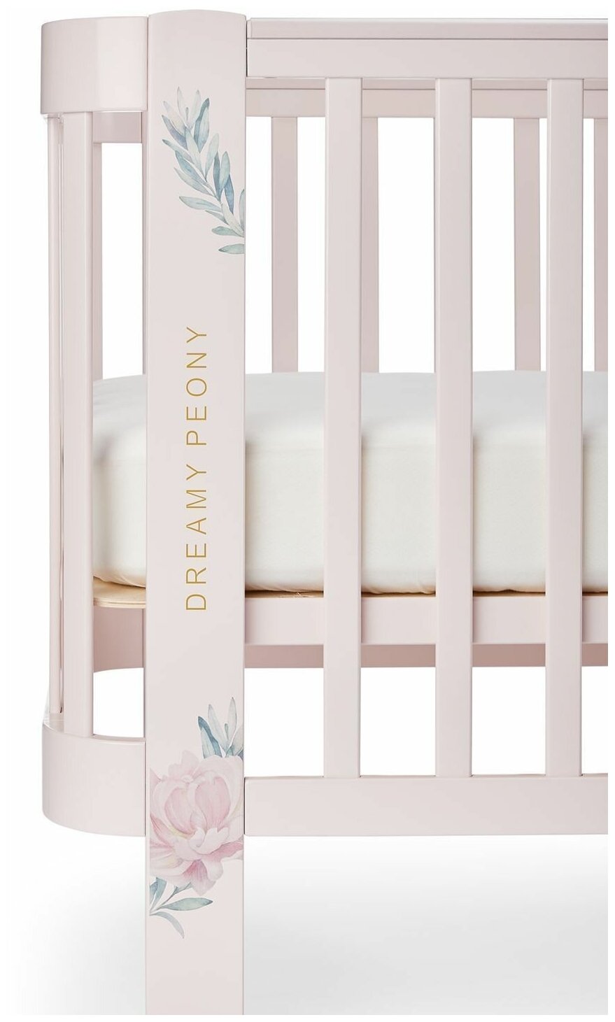 95024, Кроватка для новорожденных трансформер 0-5 лет, Happy Baby MOMMY LOVE, массив дерева, люлька-кроватка, колёса, маятник, розовая с ландышами