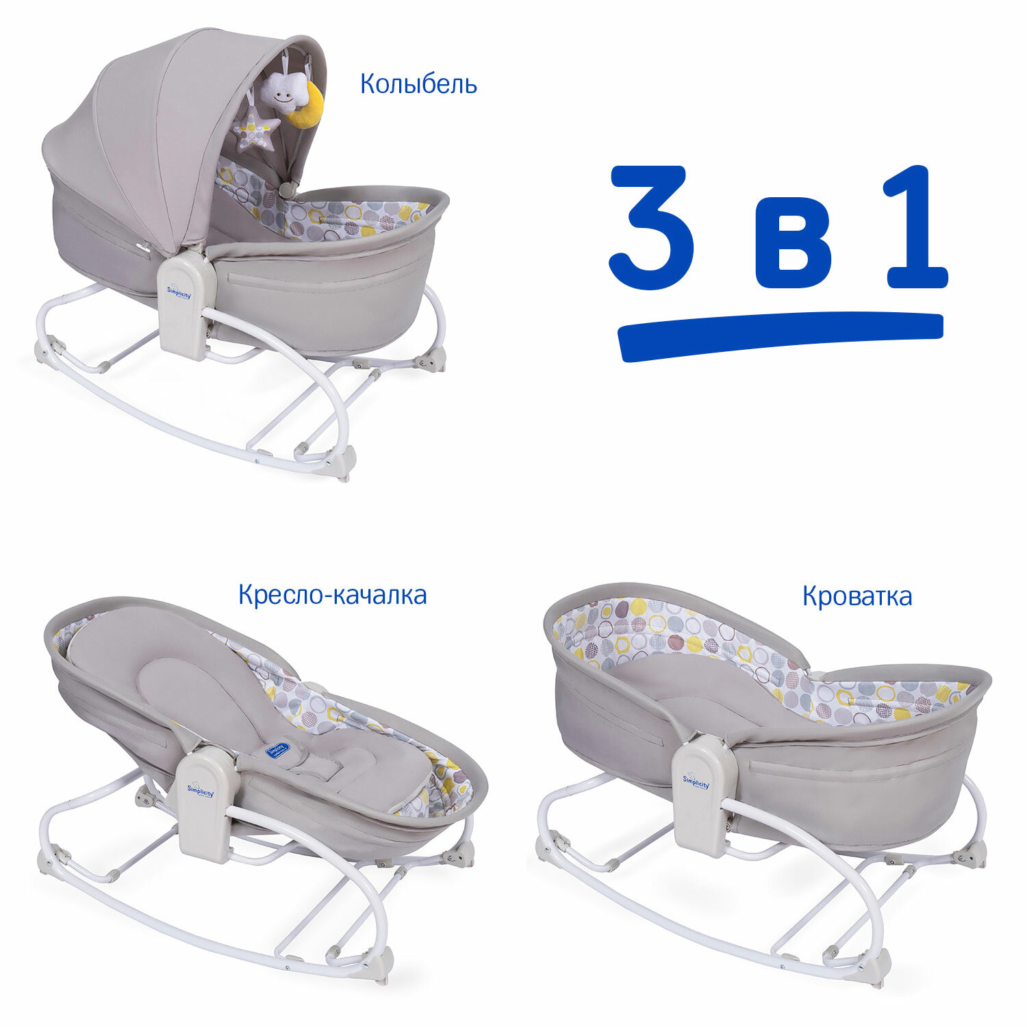 Купить Колыбель-трансформер Simplicity 3010 Elite 3 в1 (Beige Circles)