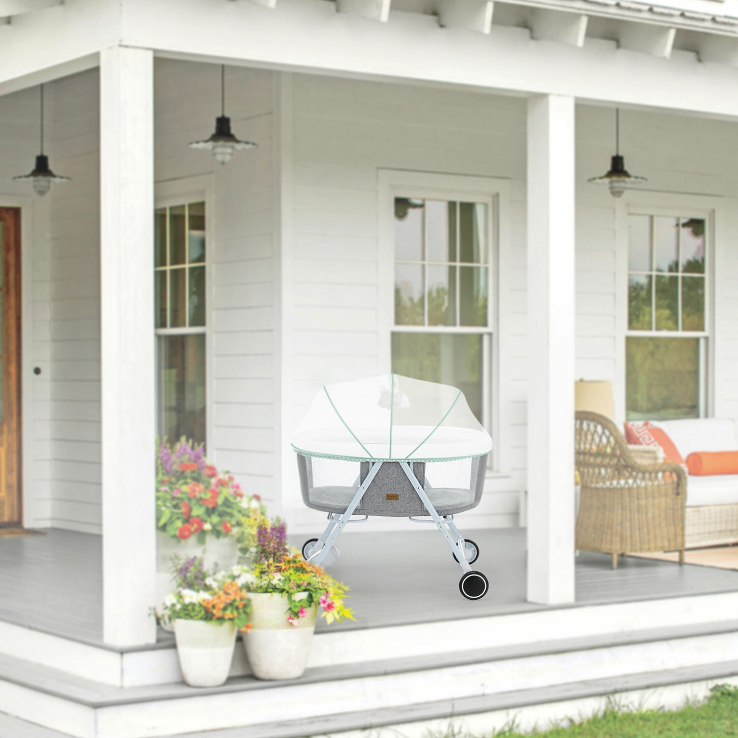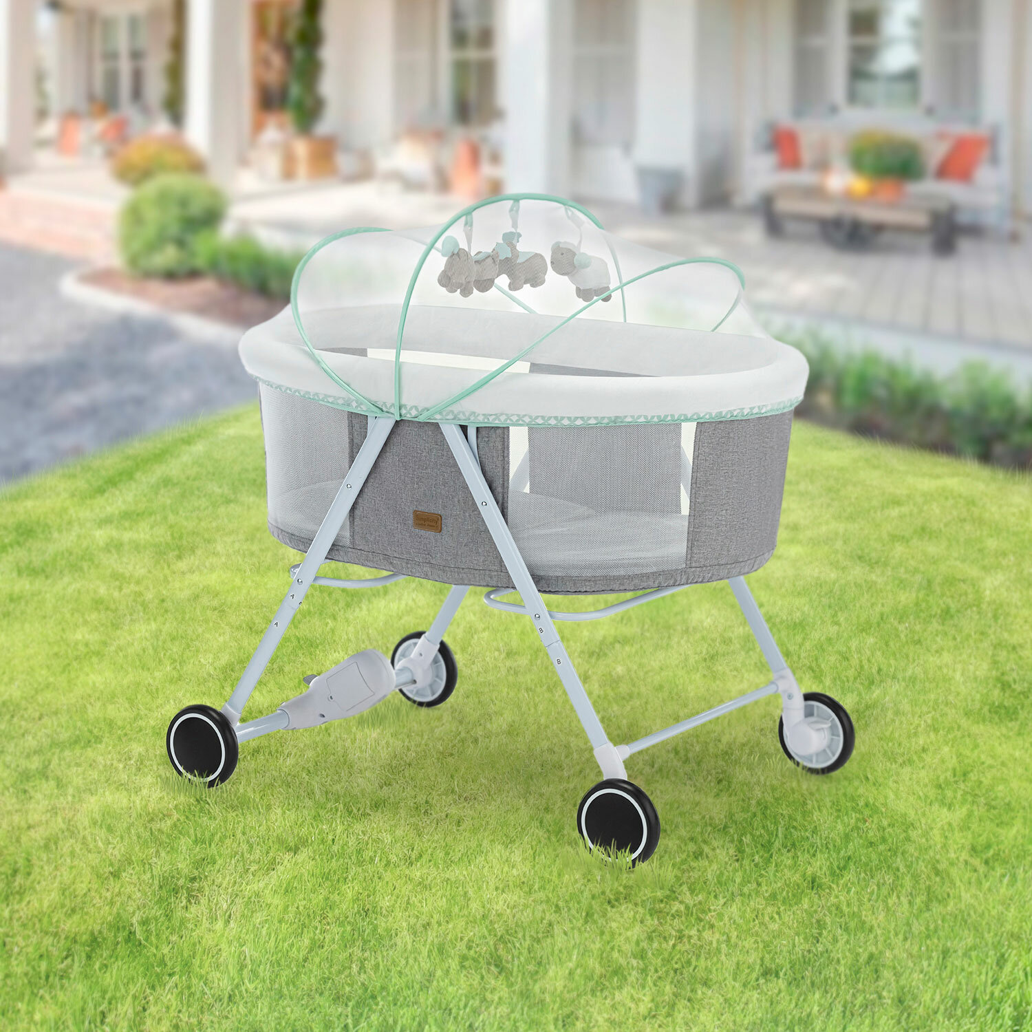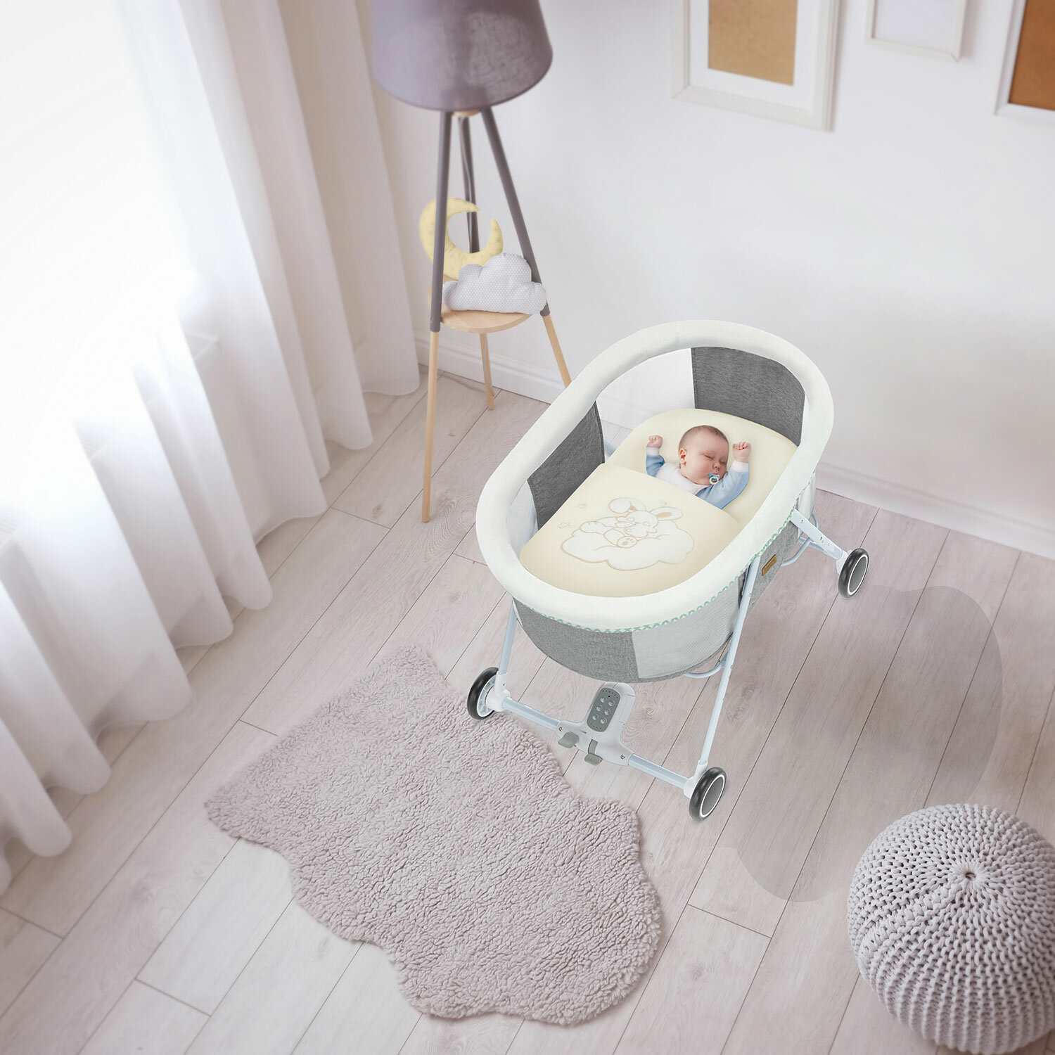 | Отзыв: | благодаря колесикам удобно переставлять по квартире, прочный каркас, удобно, что укачивает сама) |