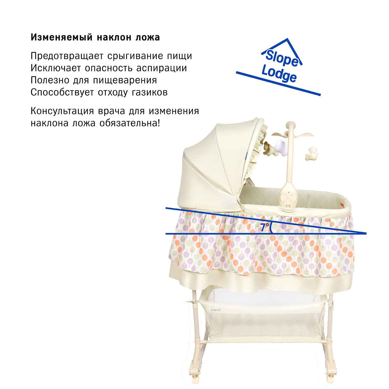 | Плюсы: | Есть возможность приподнять ложе после кормления для того, чтоб предотвратить срыгивание.