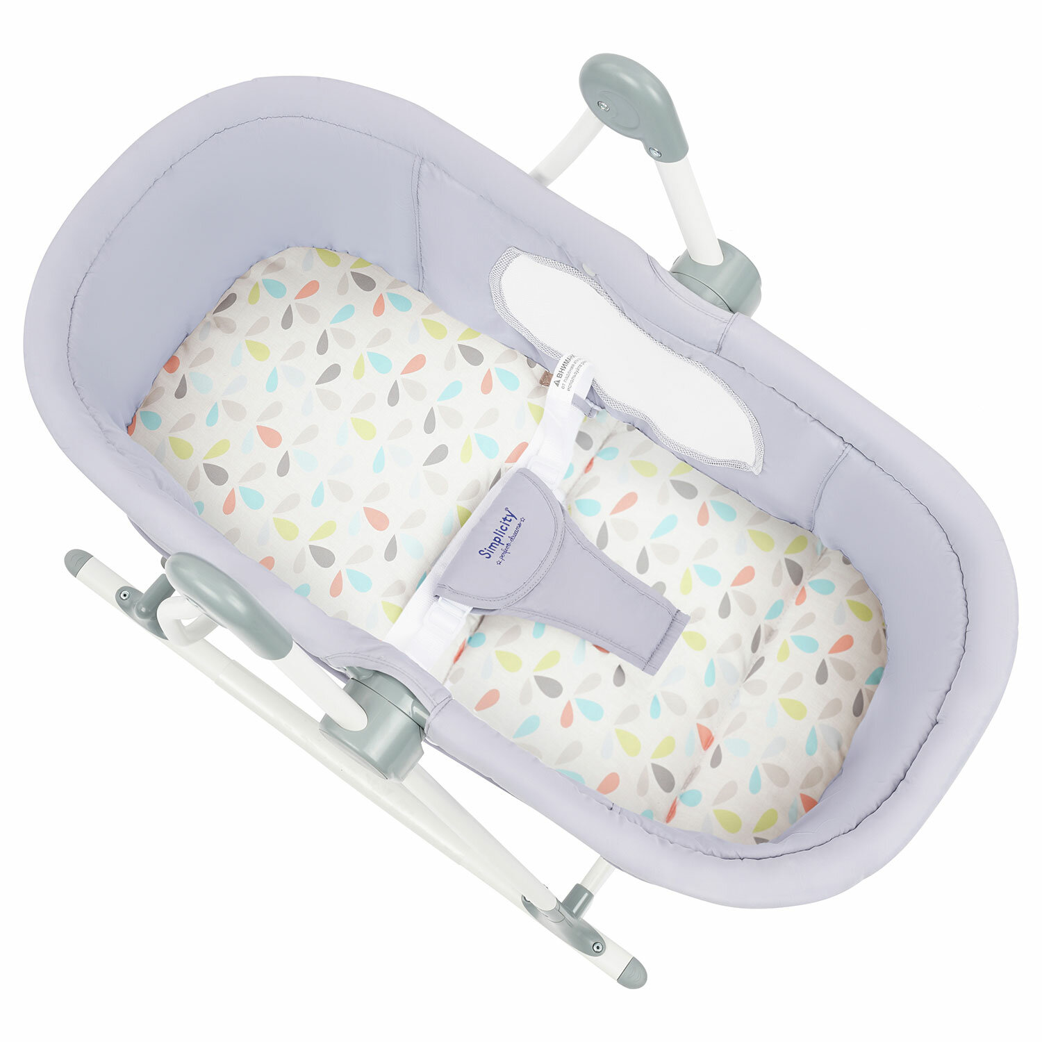 Есть полозья для качания, но тут не только укачивать можно. Мы выбрали еще вариант шезлонга, чтобы можно было ребенка оставлять ненадолго. Для этого есть фиксирующие ремешки и разграничитель между ножек |