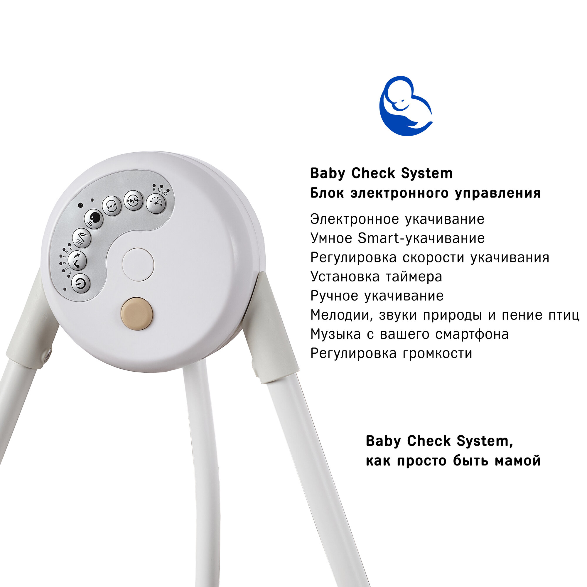 Управление простое и удобное - с помощью пульта. Есть таймер на 8, 15 и 30 минут, плюс можно настраивать режимы и амплитуду качания. |
